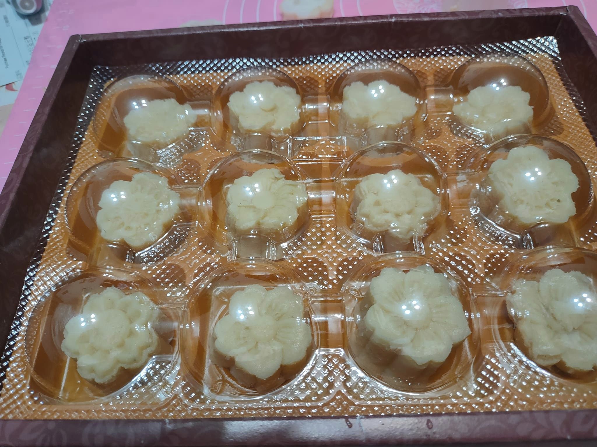 新鮮綠豆糕DIY 想做綠豆糕好久了, 網路上常有人教學 嘗試結果成功了好棒棒 先將綠豆仁浸泡一碗蒸熟加入少許白糖壓碎 放入炒鍋內 加入奶粉白糖奶油拌炒 再加入麥芽糖繼續炒 炒乾後用塑膠袋包起來壓平 放入冰箱冷藏一晚 隔天取出退冰 搓揉成條狀切塊用模型壓出圖案 剛開始還很緊張怕壓壞了幸好成功了 一顆顆美美的綠豆糕成型了 用小盒子裝起來好美 今年中秋節吃剩的空盒派上用場了大小剛好用來裝綠豆糕完美