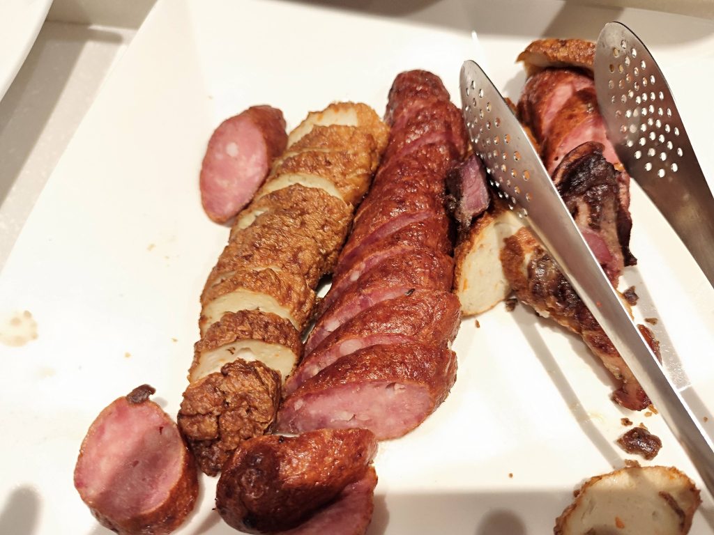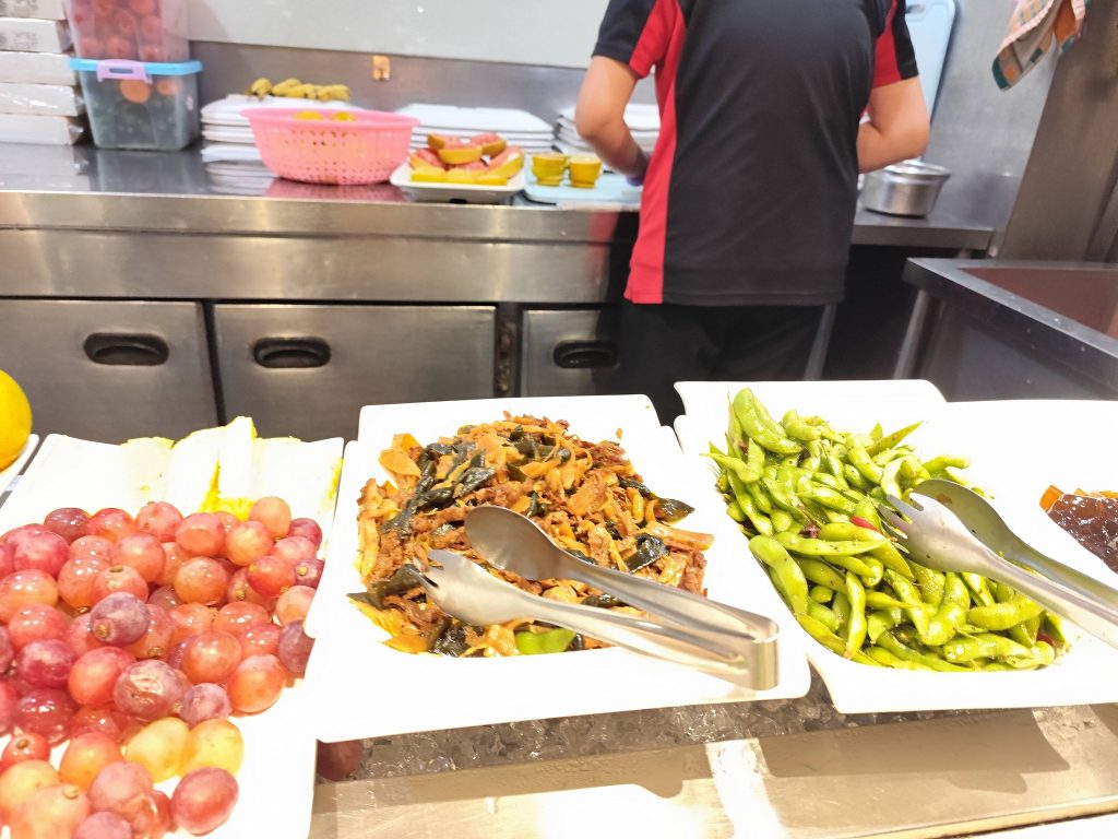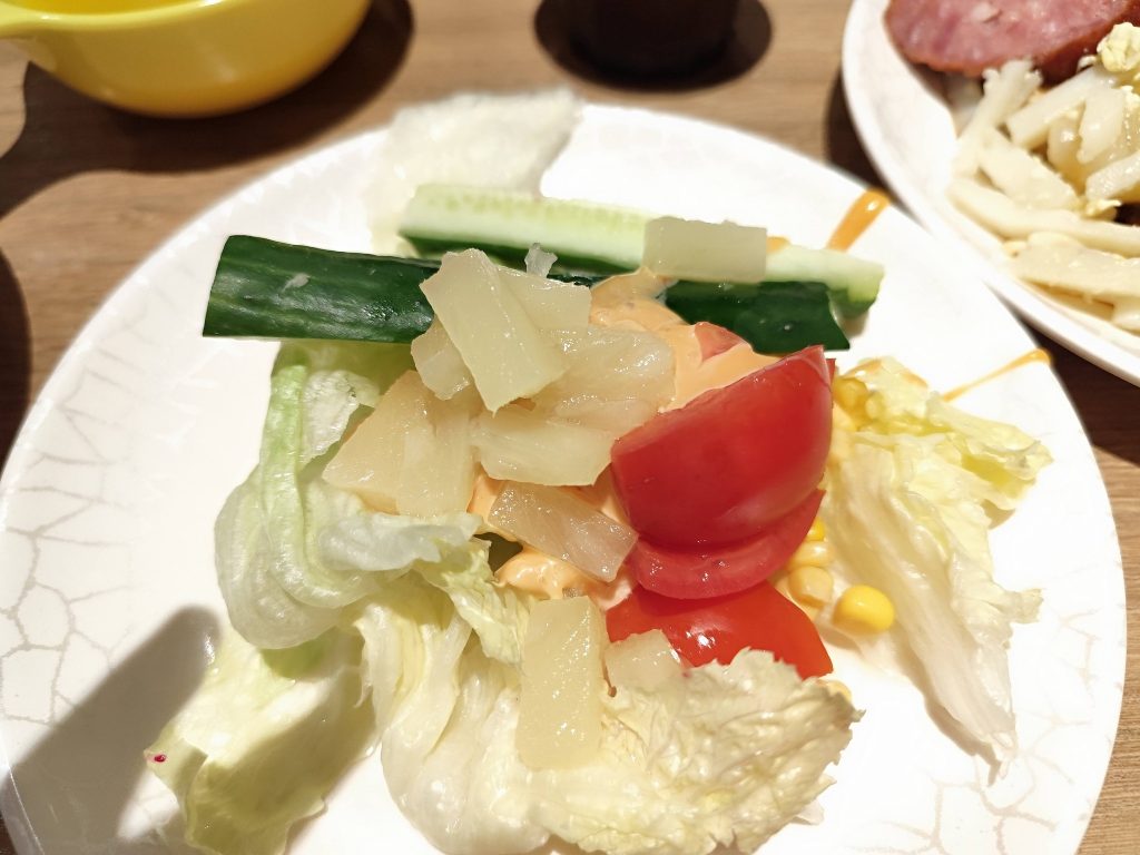 我家牛排遲來生日宴 按例老弟每年要請我吃生日宴想了半天決定在中華路我家牛排 雖是非假日客人還是蠻多的 菜單1 菜單二 點好餐後先到吧非拿餐點 義大利麵涼了 香腸好硬 炒米粉也是涼颼颼的 還好肉燥不錯 麵包只有一種選擇厚片吐司不見了烤的人太多等不到空檔放棄 冷飲還是一樣 開水機 可以自己泡茶 沙拉吧區 水果區涼菜區 醬料湯品區 黑胡椒醬味道好濃 先吃沙拉打開我的胃 拿的第一盤 肉燥飯加炒洋蔥 排餐來瞭實在沒味口 我的雞排餐現在連黃金但都沒了 吃完後來客甜點 飯後水果不能少 對我家牛排吧非很失望 烤乳豬豬皮咬不爛 鹽酥雞也因為變涼整個乾巴巴的 熟食溫度不夠影響口感 跟老弟說著說著 還念起寒軒下午茶了 決定找個機會再重溫