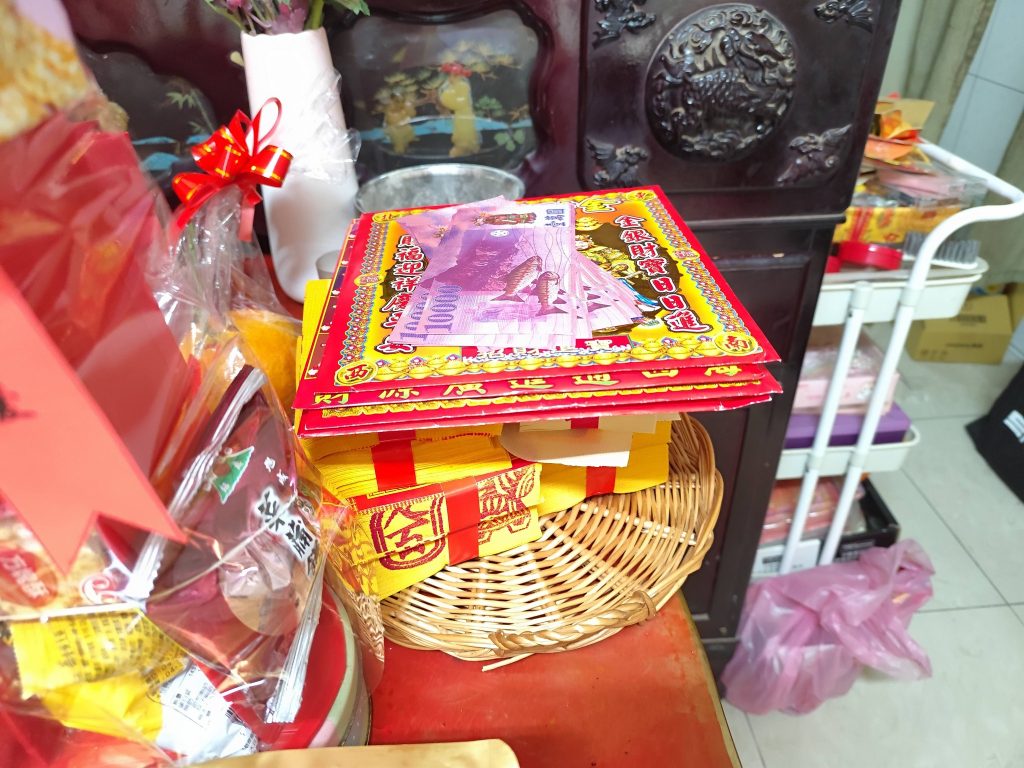 2026春節祭祀Ⅵ 初一初五開市 大年初一也要祭拜 準備年糕餅乾 小外甥準備的肉乾 還有過年特有的紅龜粿 香爐插上華麗的配飾 幫佐先也準備一份 為神明準備專用紙錢 大年初五是開市吉日 一樣準備清酒跟光明燈 特別為開市準備的餅乾禮盒 特別買的糖果甜心 準備幾顆水果 專為開市準備的金紙疏文 從送神拜到開市有點累 但是拜完後心理滿足感 是無可替代的