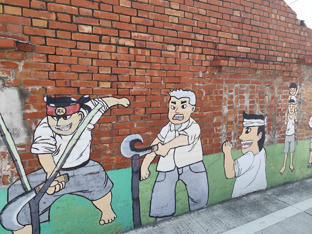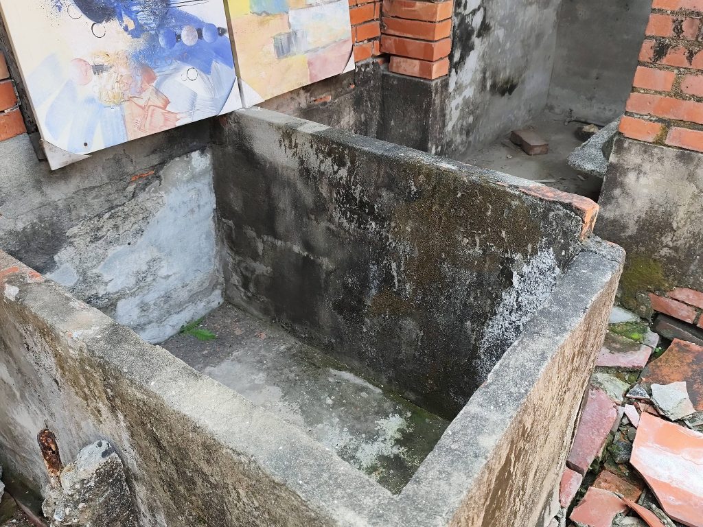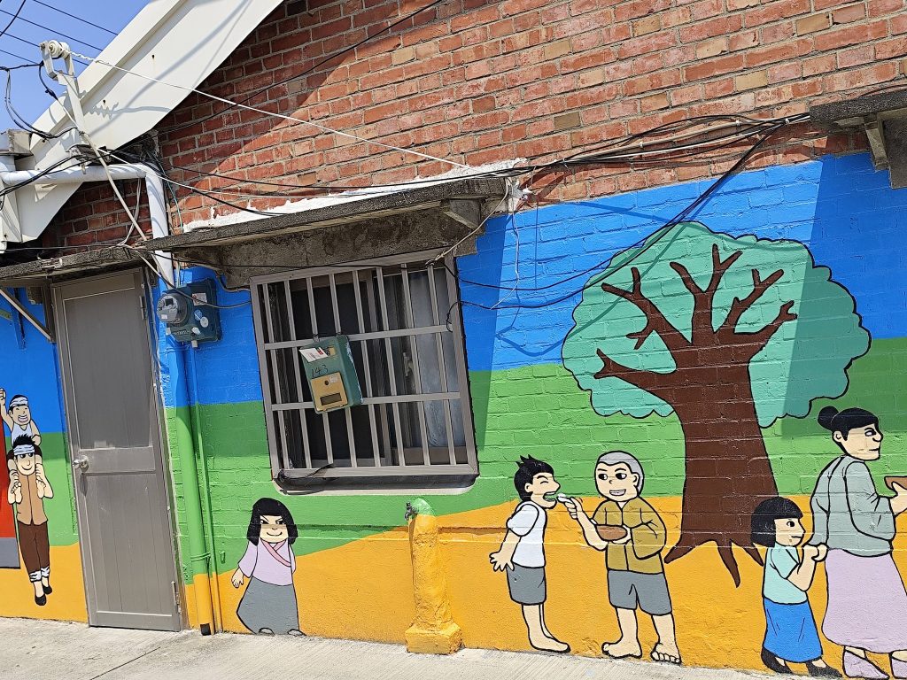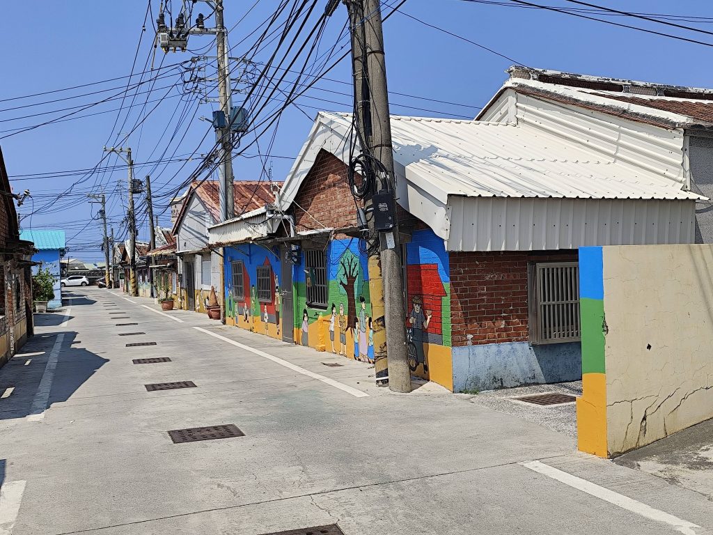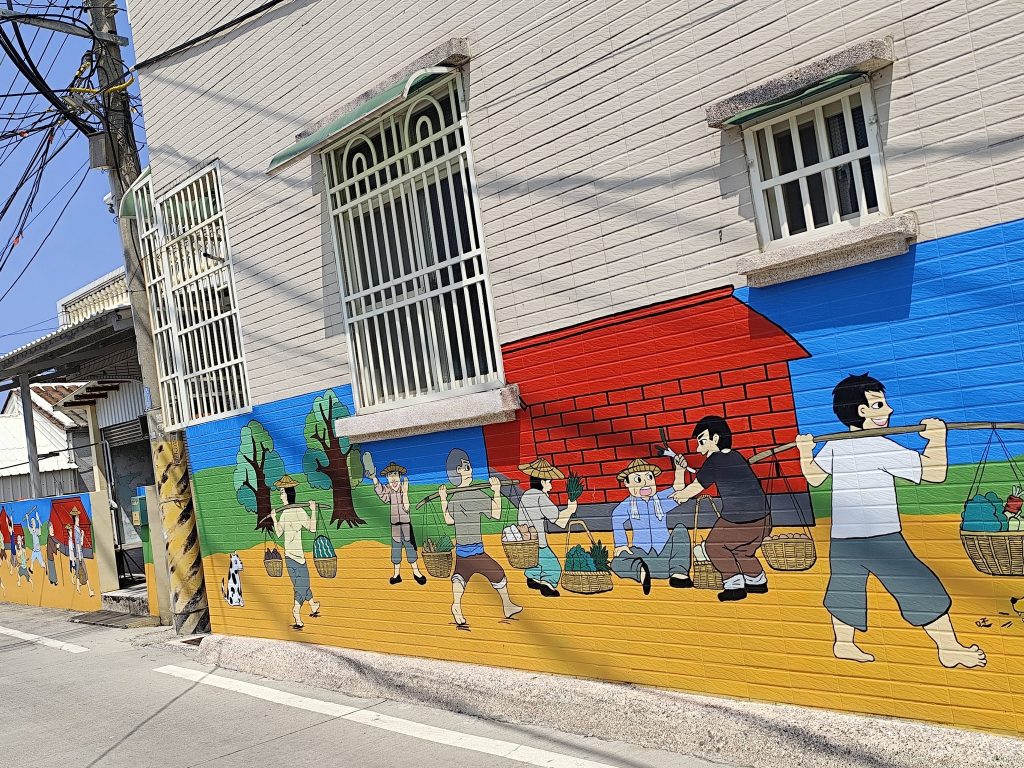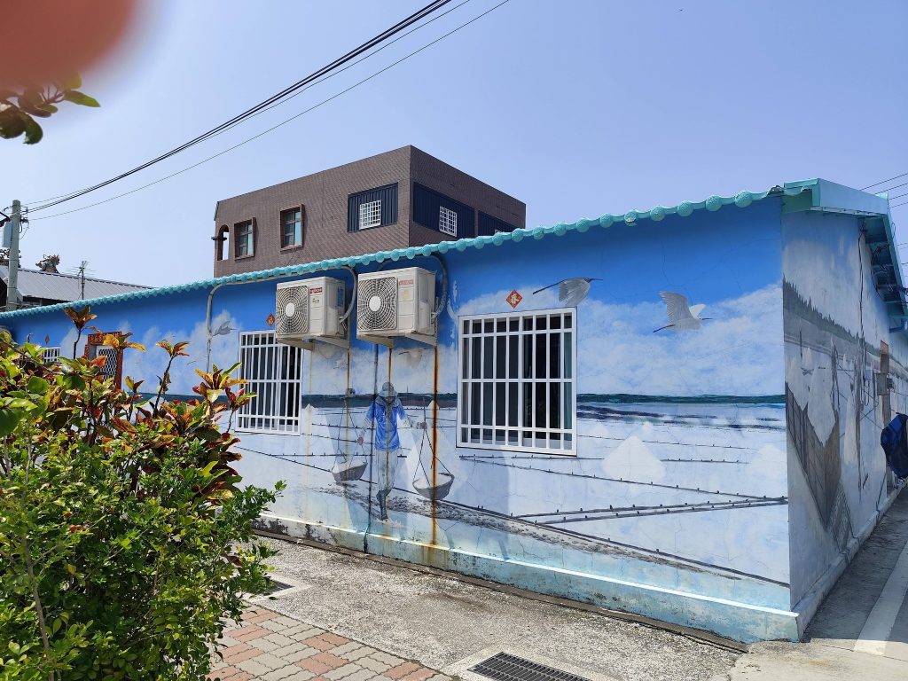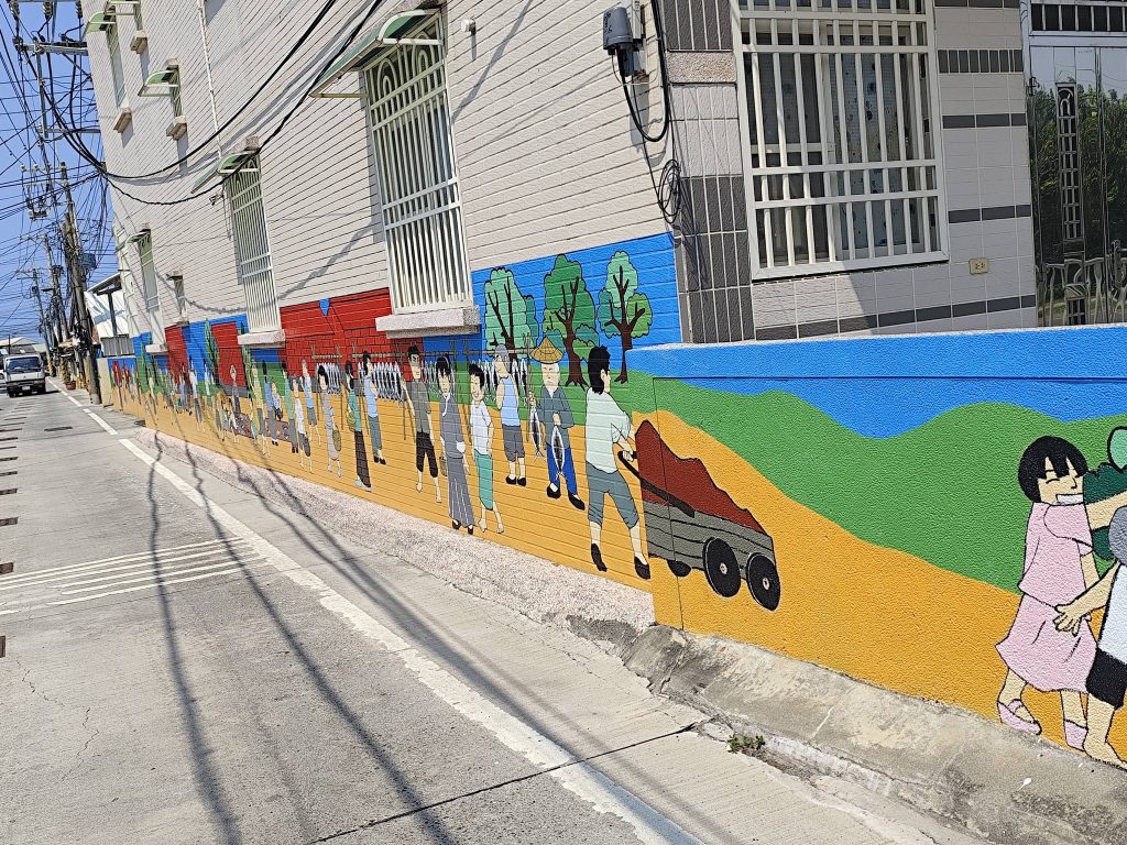 永安鹽田彩繪村一遊 難得老妹休年假便要老弟開車帶我們一遊商討老半天決定到高雄永安早上一上車老弟就苦著張臉一直唸叨:”油好貴!"每當導航報錯路就直說:”浪費10元油錢" 終於來到永安鹽田了 彩繪村就在對面 從這進來 可愛彩繪 明顯畫風不同 還有這古老建築 特有古老花磚 屋頂上特有花磚 舊式水池 老浴缸 翻修鐵皮屋 整個村里有多處魚塭 漂亮廁所 宮廟 小小的但裝修精緻 交趾燒屋頂 陽光好大是個好天氣 逛著逛著看著琳琅滿目鹽田彩繪村 也是滿足開心!