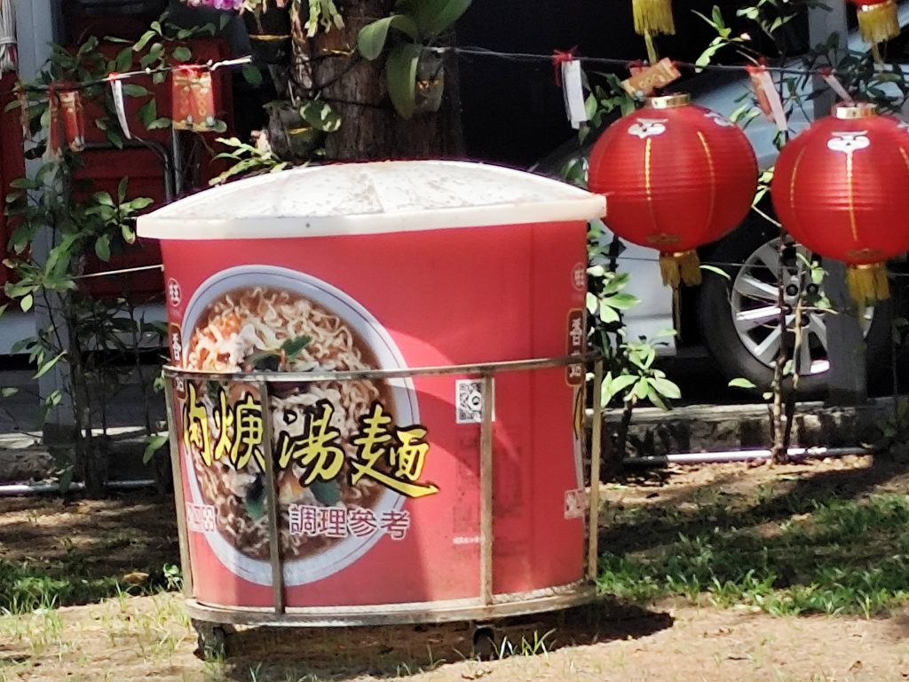 烏林投玄德宮狂吃泡麵 來永安看過彩繪村遊過永安溼地再來一定要到烏林投玄德宮狂吃泡麵 車子只開不到十分鐘就到烏林投玄德宮了 烏林投玄德宮停車場 掛滿紅燈籠 涼亭 三大碗泡麵擺飾原以為是大型垃圾桶結果看了半天它就是擺飾 烏林投玄德宮就在社區服務站旁邊 一旁擺了桌椅方便遊客吃泡麵 壯觀泡麵櫃裡面有幾十種不同口味泡麵 贊助者名單 巨大開水桶 老弟說來這就是會很想吃泡麵三個人泡了四碗因為還要吃午餐我就意思意思吃了幾口奇怪的是麵在這裡泡出來就是特別好吃 烏林投玄德宮後方觀景長廊 海口 長廊裝飾 風車裝置藝術 烏林投玄德宮旁販賣部 各式紙錢 還真的有點小貴 烏林投玄德宮不僅可以海吃泡麵 沿岸海景也是蠻美的 來這吃吃泡麵吹吹海風 也是一種美味饗宴